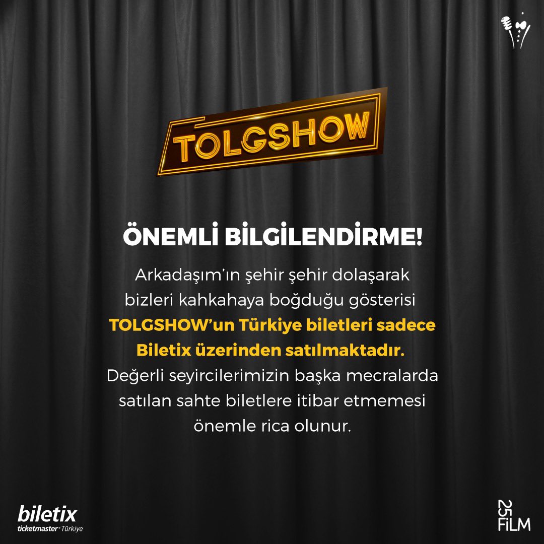 ‘Arkadaşım’ karakteri ile milyonları güldüren Tolga Çevik sahnede artık bir klasik haline gelen doğaçlama oyununun Türkiye Turnesi’yle izleyicinin karşısına çıkıyor. ‘Arkadaşım’ karakteri ile seyircinin gönlüne taht kuran Tolga Çevik sahnede yeteneğinin göstererek doğaçlama oyunuyla sevenleriyle buluşuyor. Şimdiye kadar ‘Yönetmen’in akla gelmedik taleplerini gerçekleştirmek için ter döken ‘Arkadaşım’ bu kez ‘Yönetmen’i çıldırtmakta ısrarlı. ‘Gizemli Yönetmen’ Fırat Parlak rejide, ‘Minik’ lakaplı müzisyen Özer Atik’in de sahnede yer aldığı tamamı doğaçlama bu harika performans sizlerle buluşmak için sabırsızlanıyor. İşte Tolga Çevik ile TOLGSHOW’un gösterim tarihleri ve gösterinin detayları…