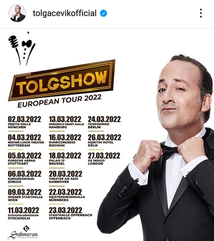Komedyen Tolga Çevik, paylaştığı bir video ile tek kişilik performans sergilediği Tolgshow’la dünya turnesine çıkacağını açıkladı.