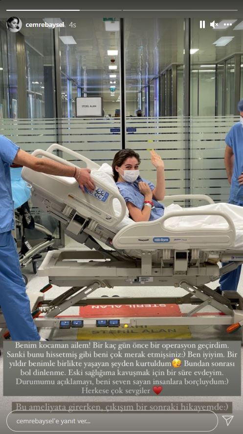 Baht Oyunu'nun güzel oyuncusu Cemre Baysel sosyal medya hesabından paylaşım yaparak sağlık durumu hakkında takipçilerine bilgi verdi. Baysel, paylaştığı fotoğrafa, "Benim kocaman ailem! Birkaç gün önce bir operasyon geçirdim. Sanki bunu hissetmiş gibi beni çok merak etmişsiniz. Ben iyiyim. Bir yıldır benimle yaşayan şeyden kurtuldum. Bundan sonrası bol dinlenme. Eski sağlığıma kavuşmak için bir süre evdeyim. Durumumu açıklamayı beni seven sayan insanlara borçluydum. Herkese çok sevgiler. Bu ameliyata girerken, çıkışım bir sonraki hikayemde" notunu ekledi.