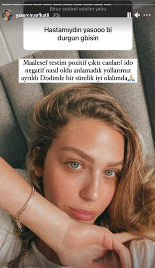 Magazin Dünyasının önde gelen isimlerinden biri olan ünlü türkücü İbrahim Tatlıses’in oğlu İdo Tatlıses’in nişanlısı Yasemin Şefkatli koronavirüse yakalandı. Halen nişanlısı İdo Tatlıses ile tatilde olan yasemin Şefkatli bugün sosyal medya hesabından bir paylaşımda bulunarak covid 19’a yakalandığını duyurdu. Henüz aşı olmayan 28 yaşındaki isim kendini halsiz ve yorgun hissettiğini belirterek soluğu hastanede aldı. Yapılan testin ardından Yasemin Şefkatli’nin koronavirüs testi pozitif çıktı ve ünlü isim evinde karantinaya alınarak tedavisine başlandı ve dinlenmeye çekildi. Ünlü isim sosyal medya hesabından yaptığı paylaşımda da “hasta mısın” şeklindeki bir soruya, maalesef testim pozitif çıktı canlar. İdo’nun negatif. Nasıl oldu anlamadık. Yollarımız ayrıldı Dodi’mle bir sürelik. İyi olalım da” ifadelerini kullandı.