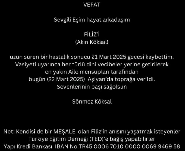 FİLİZ AKIN HAYATINI KAYBETTİ