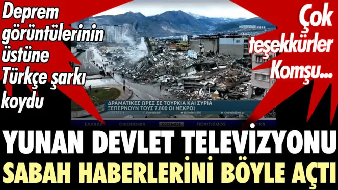 Kahramanmaraş merkezli depremler 3 gündür ciğerleri dağladı. Yüzyılın felaketi için hem ülke için hem de yurt dışından yardım eli uzanıyor. Bunlardan biri de komşu devlet Yunanistan oldu. Yunan arama kurtarma ekiplerinin Türk arama kurtarma ekipleriyle yan yana çalışarak enkaz altındaki vatandaşlarımızı kurtarmaya devam ediyor. Gün Birlik Günü, sloganıyla yardıma koşan Yunan ekiplerine bir destek de Yunan devlet Televizyonundan geldi. Kahramanmaraş’taki deprem görüntülerini ekrana getiren Yunan Televizyonu, 'Ben Seni Sevdiğimi' şarkısıyla sabah haberlerini sundu. Ülkemizde yaşanan deprem felaketine bigane kalmayan Yunanistan devlet televizyonu ERT, bu sabah haberlerini Türkçe bir kliple açtı.